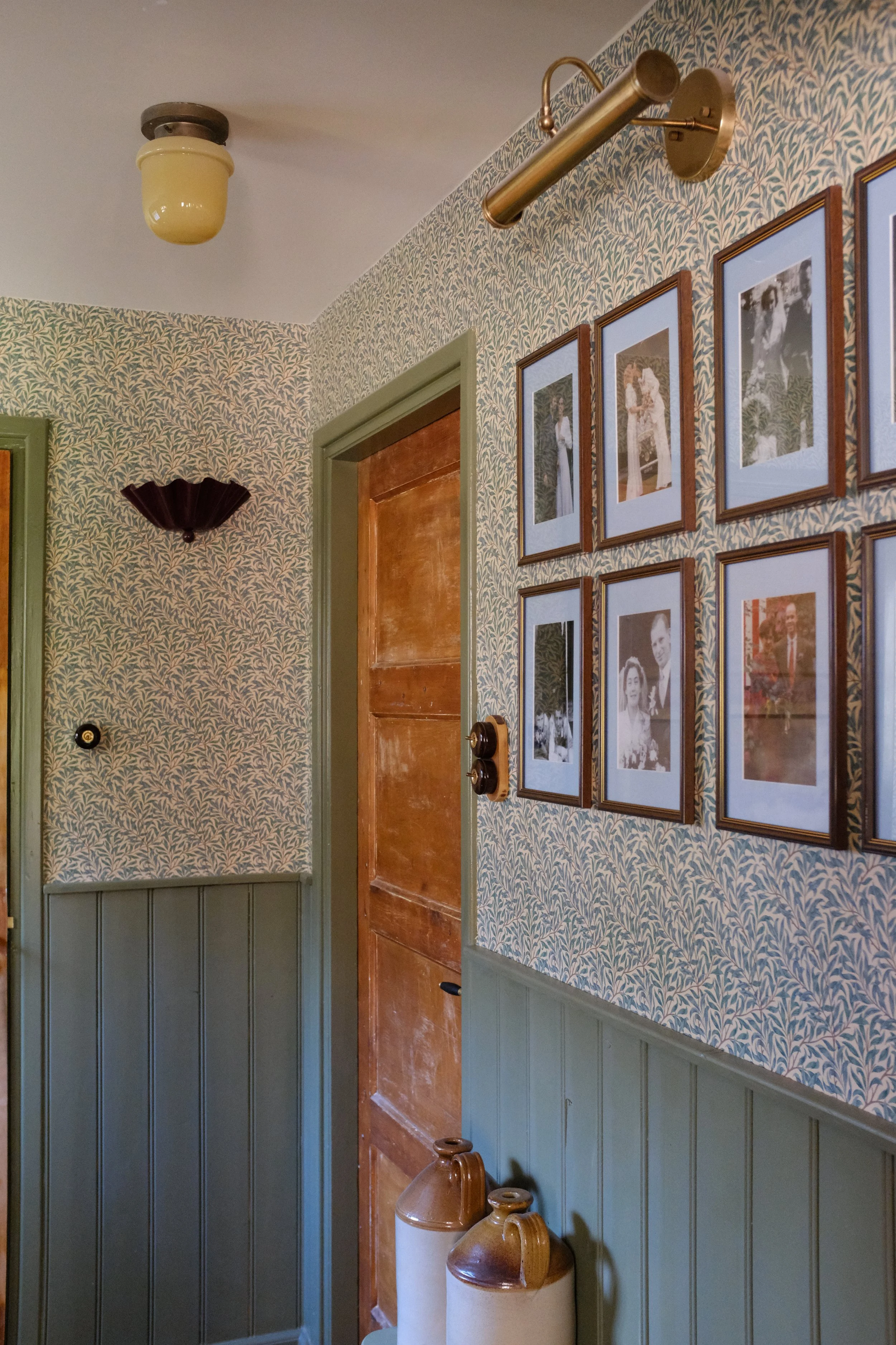 In our hallway we use an antique ceiling lamp together with wall lighting and a picture light. Wall lamps are especially useful in narrow spaces because they add warmth without taking up any floor space.